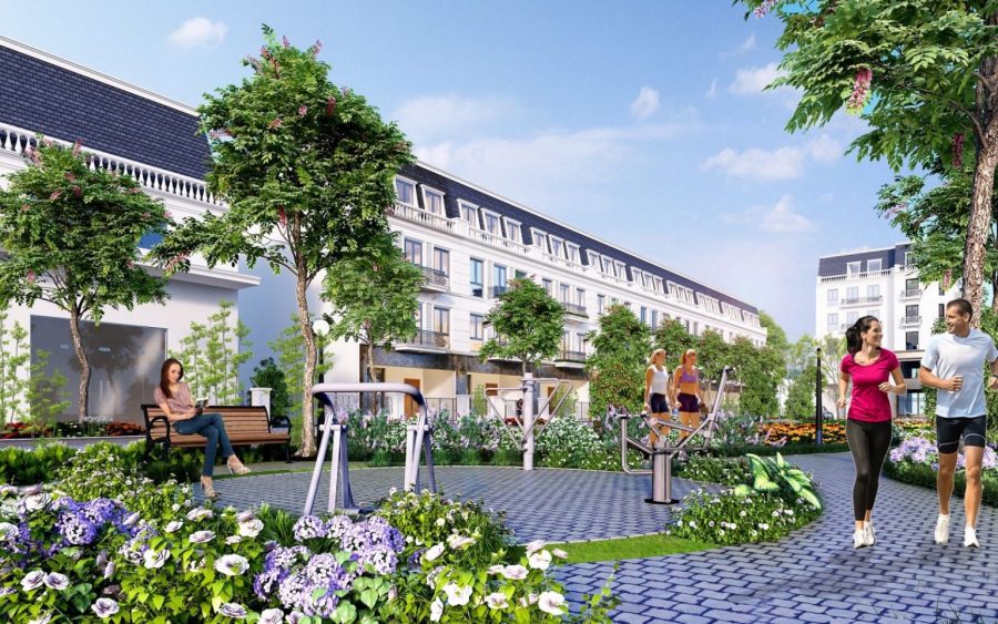 Không gian thoáng mát với dãy nhà phố thương mại liền kề kinh doanh sầm uất.