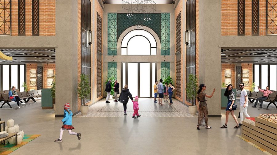 Phối cảnh khi vào bên trong sảnh chờ của bến tàu ngay công viên Đống Đa Quy Nhơn.