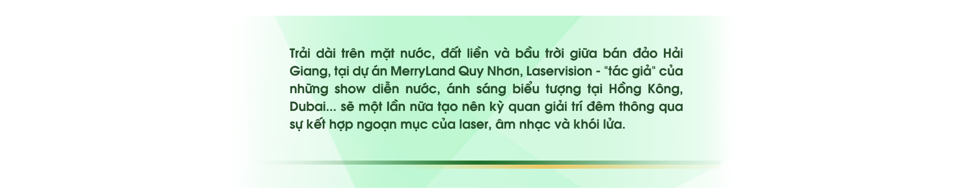 – Laservision đã thiết kế quảng trường nhạc nước MerryLand Quy Nhơn để thu hút khán giả bằng những câu chuyện gắn với văn hóa của vùng đất và những chương trình độc đáo theo chủ đề, chương trình ca múa nhạc trên các đài phun nước và công nghệ giải trí đẳng cấp thế giới. Chúng tôi đã phối kết hợp các đài phun nước, tia laser, và hiệu ứng ngọn lửa để vẽ nên những câu chuyện cực kỳ ấn tượng, khiến cho khán giả chìm đắm trong không gian đó và muốn quay lại nhiều lần nữa.