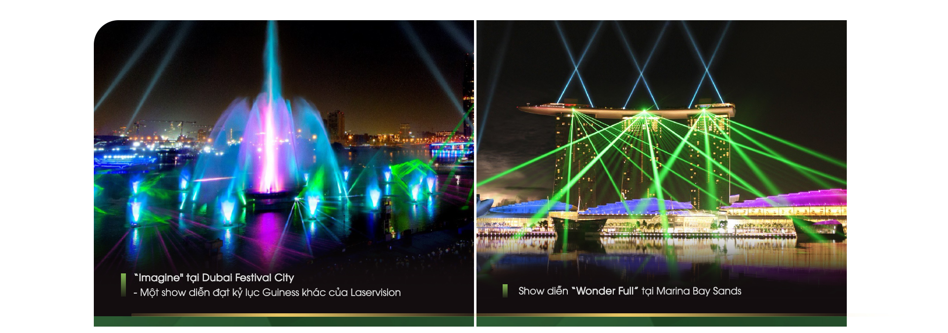 Tác giả của “A Symphony of Lights” là cái tên nổi bật – Laservision. Đơn vị này nức tiếng toàn cầu với những đại tiệc trình diễn nước, âm thanh và ánh sáng, trong đó nhiều công trình ghi nhận kỷ lục Guinness thế giới. Có thể kể đến như show diễn “Imagine” tại Dubai Festival City (Dubai) hay “Wonder Full” tại Marina Bay Sands (Singapore)…