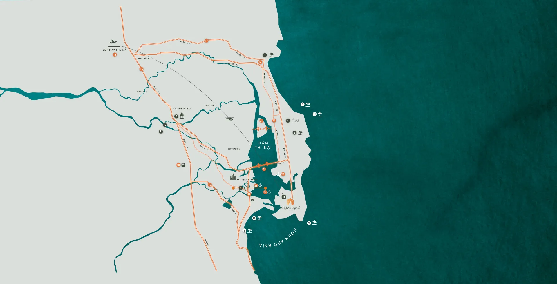 MerryLand Quy Nhơn kết nối nhanh chóng đến hệ thống hạ tầng giao thông không – thủy – bộ hoàn thiện. Với khoảng thời gian di chuyển từ sân bay ngắn hơn thành phố Quy Nhơn cùng sự ra đời của tuyến cáp treo và tuyến bay trực thăng từ Mũi Tấn trong thời gian tới, nơi đây hứa hẹn sẽ là một tâm điểm phát triển mới của Quy Nhơn , nơi quy tụ mọi hoạt động kinh tế – du lịch – thương mại – giải trí đa dạng và đẳng cấp.