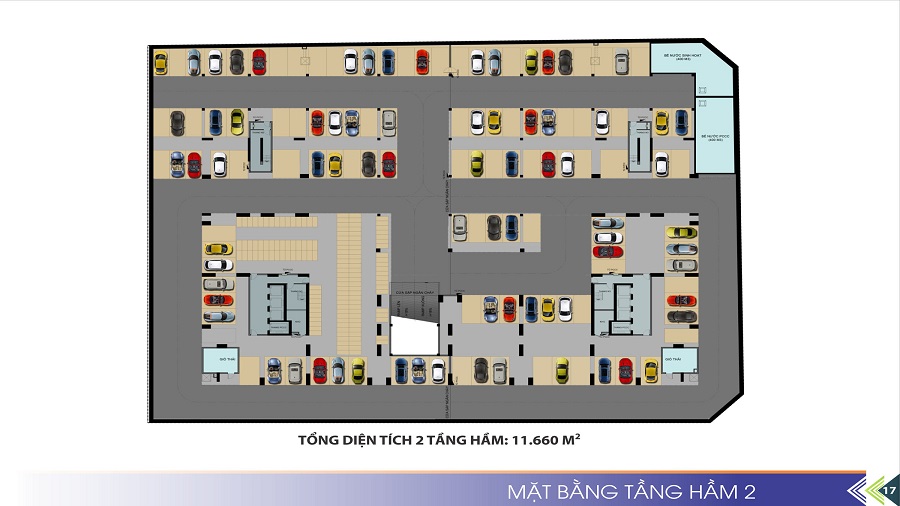 - Hầm để xe rộng rãi với sức chứa lớn, an toàn bảo mật.