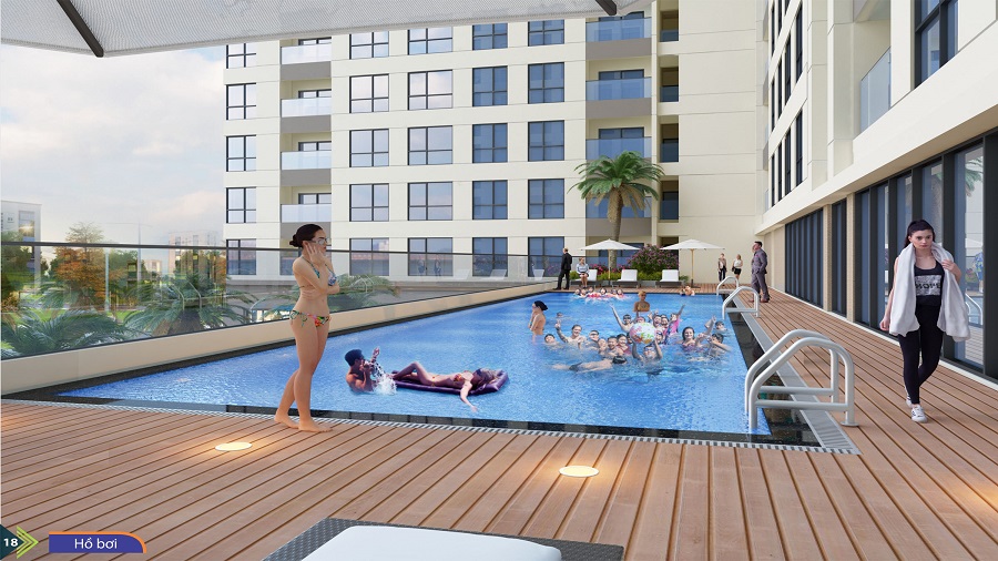 - Hồ bơi vô cực nằm ở tầng 3, xua tan những cơn nóng bức mùa hè, dành cho mọi lứa tuổi.