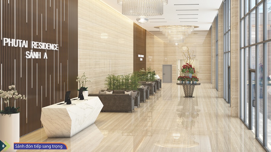 - Khác với một số chung cư khác tại Quy Nhơn, Phú Tài Residence được thiết kế sảnh chờ sang trọng, có lễ tân trực 24/24.