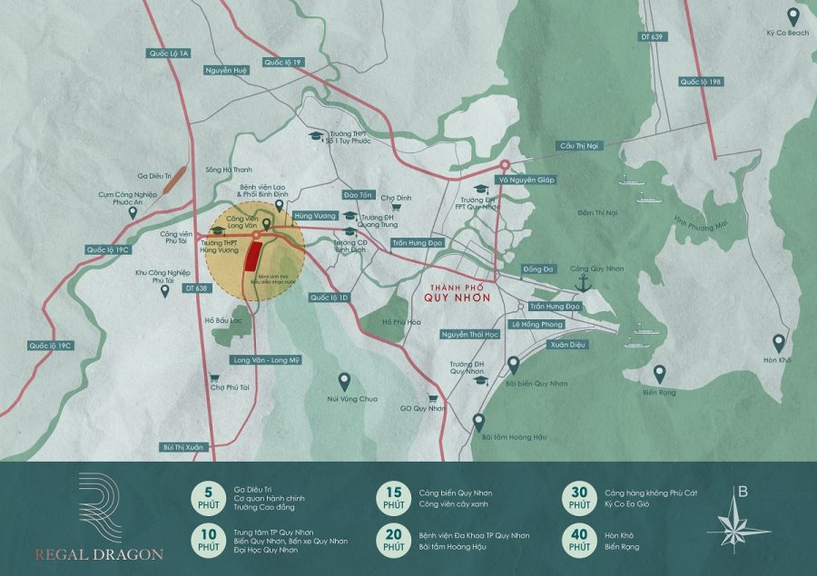 Regal Dragon là dự án nhà phố thương mại có vị trí vô cùng đắc địa hàng đầu của thành phố biển Quy Nhơn. Khi tọa lạc ngay góc của các đại lộ lớn như Long Vân – Hùng Vương – Tây Sơn. Là tâm điểm kết nối các địa danh lớn, địa điểm quan trọng. Quy Nhơn một vùng đất địa linh nhân kiệt nay đang chuyển mình phát triển mạnh mẽ về hạ tầng đô thị. Nhiều khu đô thị, khu công nghiệp, tổ hợp du lịch nghỉ dưỡng phát triển nhanh chóng.