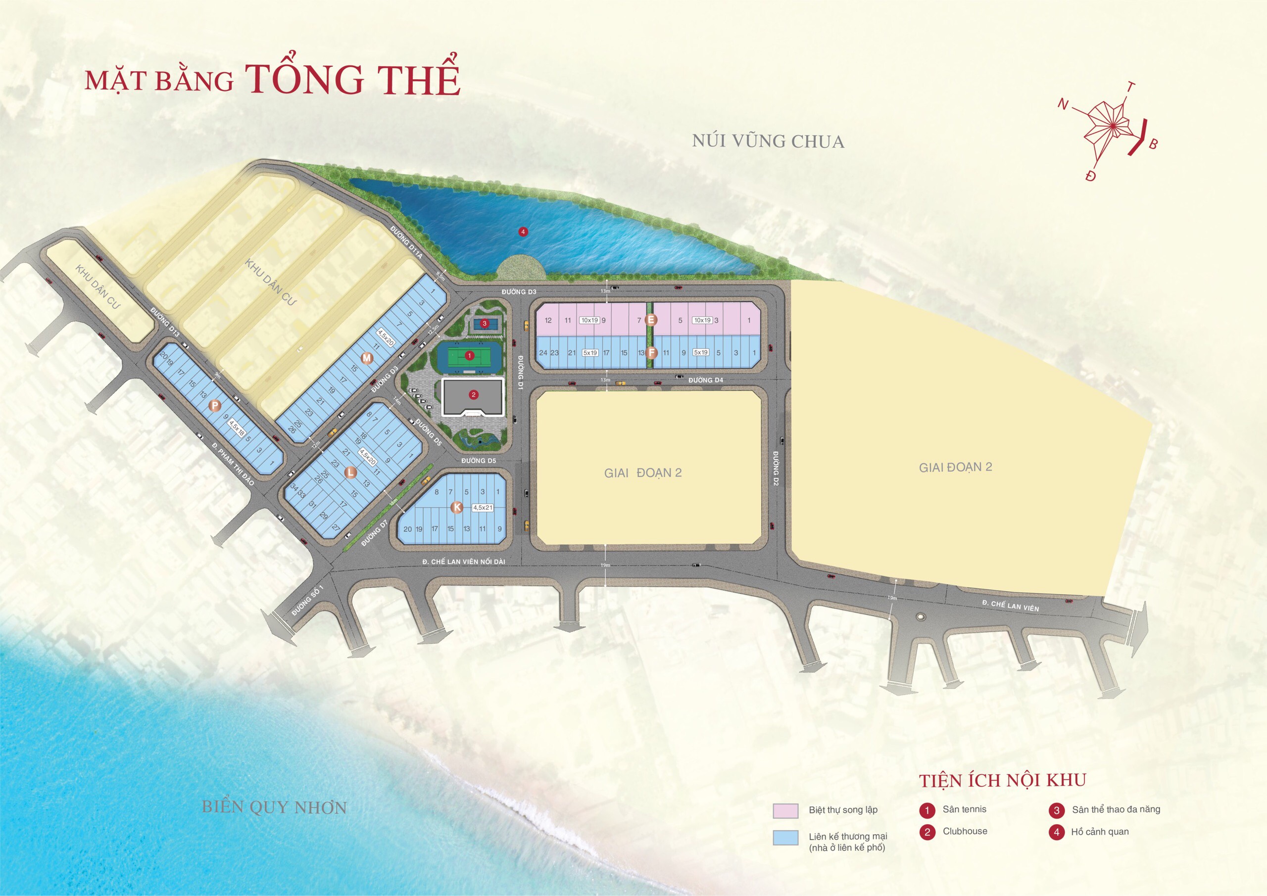 Mặt bằng dự án được xây dựng trên quy mô đất 10,3 ha với 2 block căn hộ và 3 dãy nhà phố. Dự án được phê duyệt điều chỉnh quy hoạch chi tiết xây dựng tỷ lệ 1/500 theo Quyết định số 2688/QĐ-UBND của UBND tỉnh Bình Định ngày 06/7/2020.