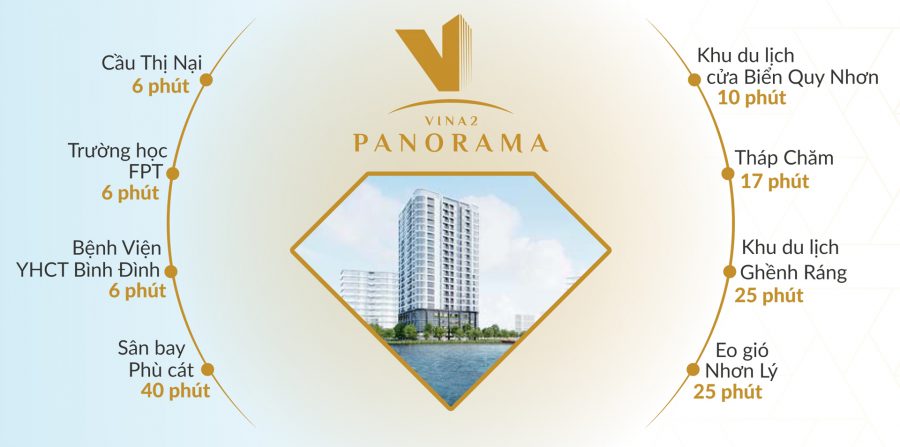 Vina2 Panorama tọa lạc tại vị trí đắc địa bậc nhất phường Nhơn Bình với nhiều ưu điểm như sở hữu 3 mặt đường lớn, được bao bọc bởi sông Hà Thanh, tiệm cận với các trung tâm hành chính, văn hóa, kinh tế của thành phố, liền kề các khu dân cư, kết nối giao thông nhanh chóng và thuận tiện, dễ dàng di chuyển đến các điểm du lịch nổi tiếng của Quy Nhơn. Vina2 Panorama đang trở thành không gian sống đáng mơ ước của mọi gia đình.