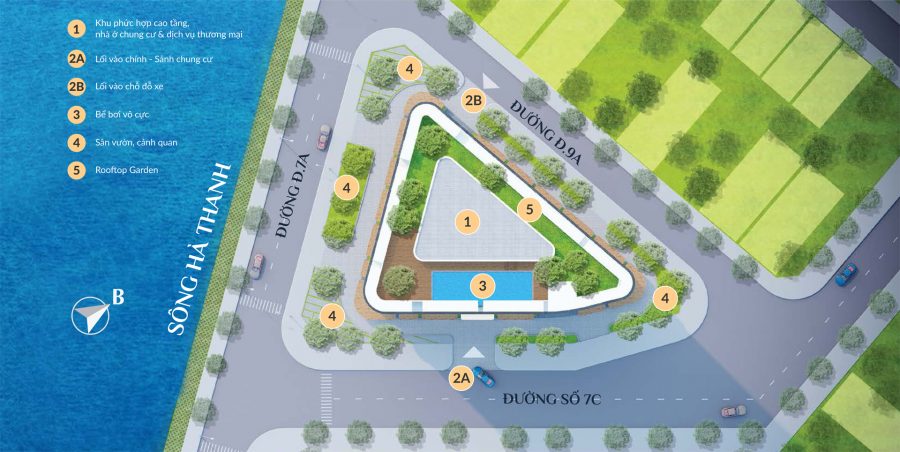 Vị trí đắc địa, sở hữu ba mặt đường lớn, đảm bảo giá trị vượt trội và tiềm năng tăng giá cao,được bồi tụ sinh khí từ sông Hà Thanh nên đây chính là nơi an cư lý tưởng, mang tới nhiều tài lộc cho các cư dân.