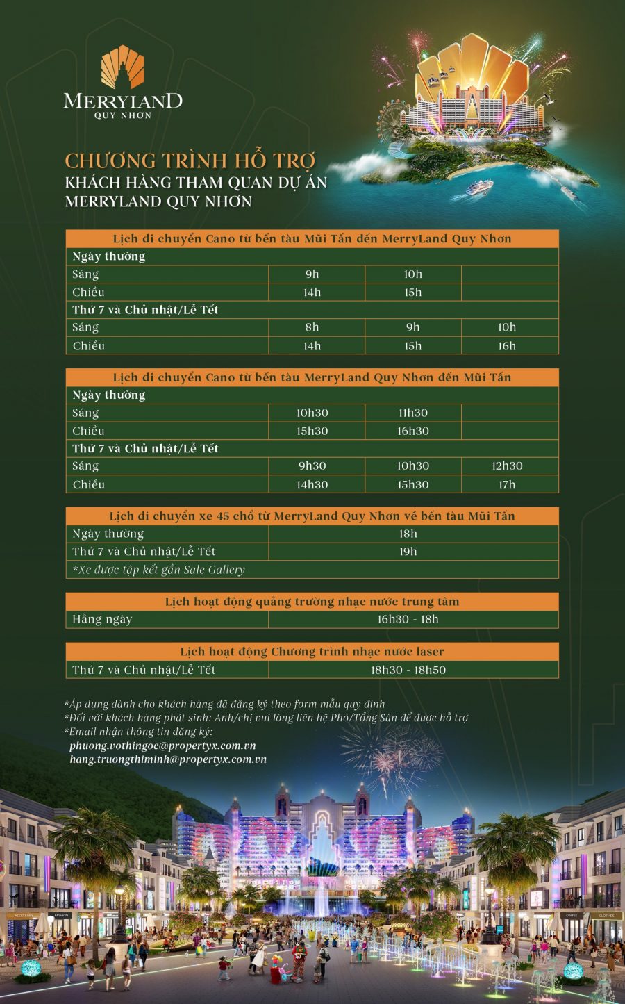 Chương trình hỗ trợ khách hàng tham quan dự án MerryLand Quy Nhơn: