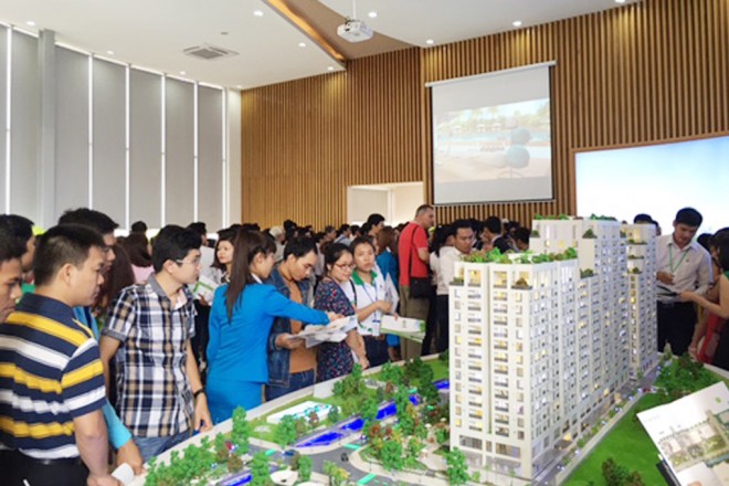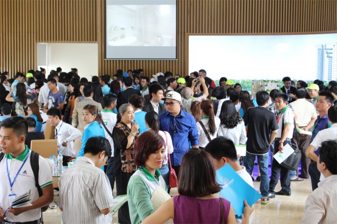 Rất đông khách hàng cùng chen chân đến tham quan nhà mẫu và tìm hiểu dự án bất động sản Opal Riverside