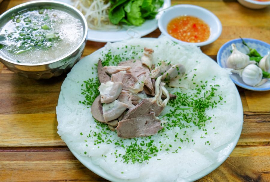 Món bánh hỏi lòng heo tại Quy Nhơn. (Ảnh: Minh Hảo).