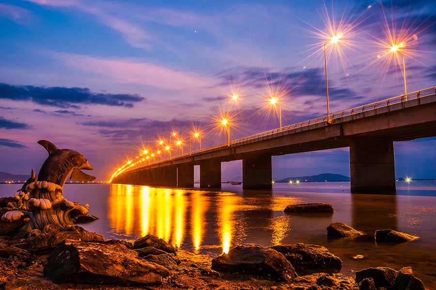 Cầu Nhơn Hội về đêm thật lung linh. (Ảnh: MInh Hảo – Hưng Thịnh Land)