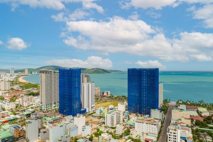 Dự án căn hộ du lịch trung tâm thành phố Quy Nhơn – Hưng Thịnh Land đã cất nóc 35 tầng 2 tòa đang trong quá trình hoàn thiện, bàn giao quý 4/2023.