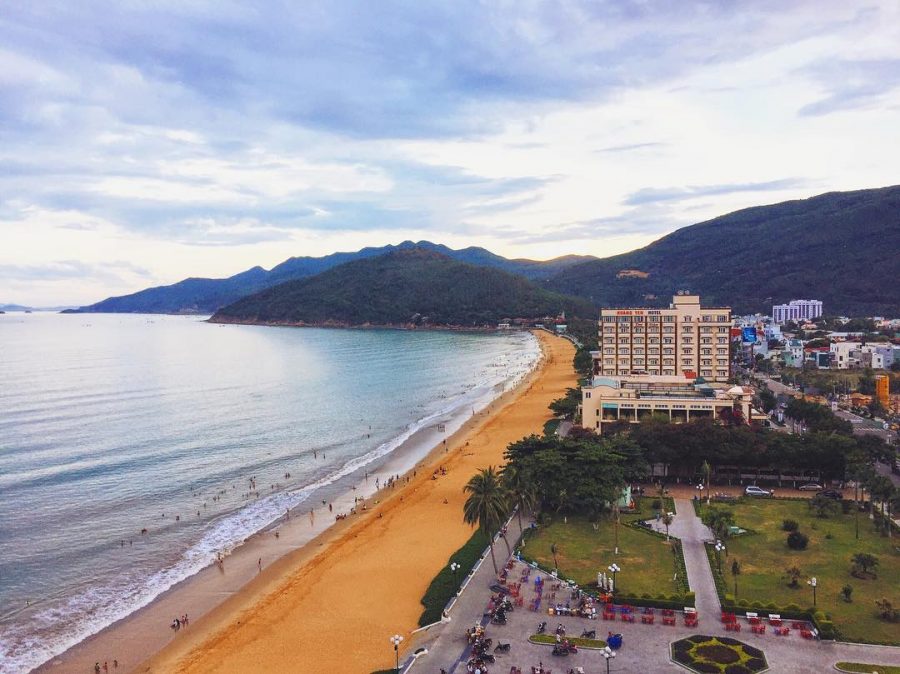 Bãi biển Quy Nhơn đang dần hình thành các tòa nhà căn hộ phục vụ cho du lịch Quy Nhơn phát triển.