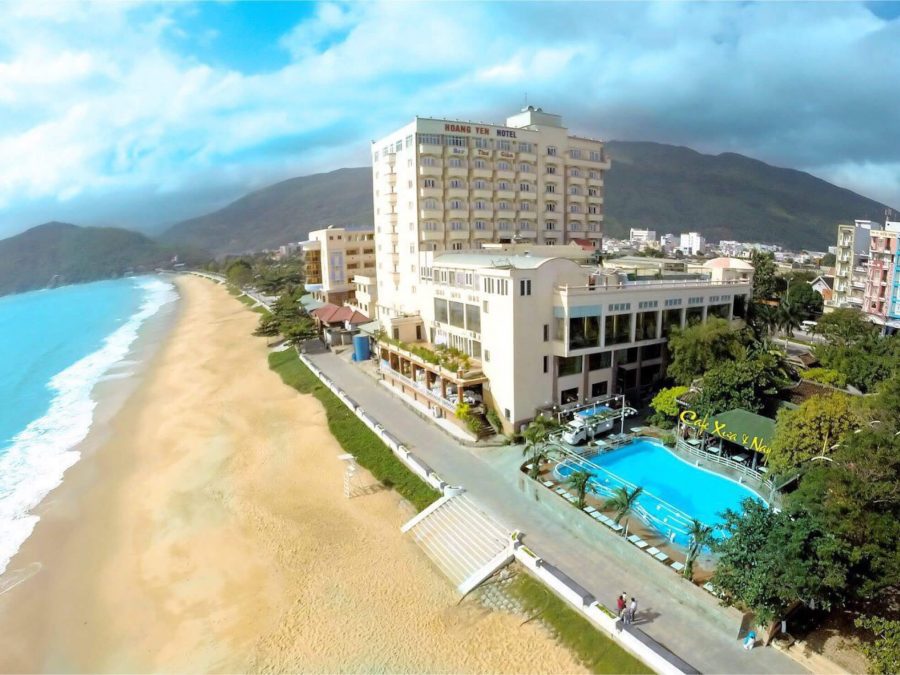 Hình ảnh khách sạn Hoàng Yến đang nằm cạnh bãi biển Quy Nhơn.