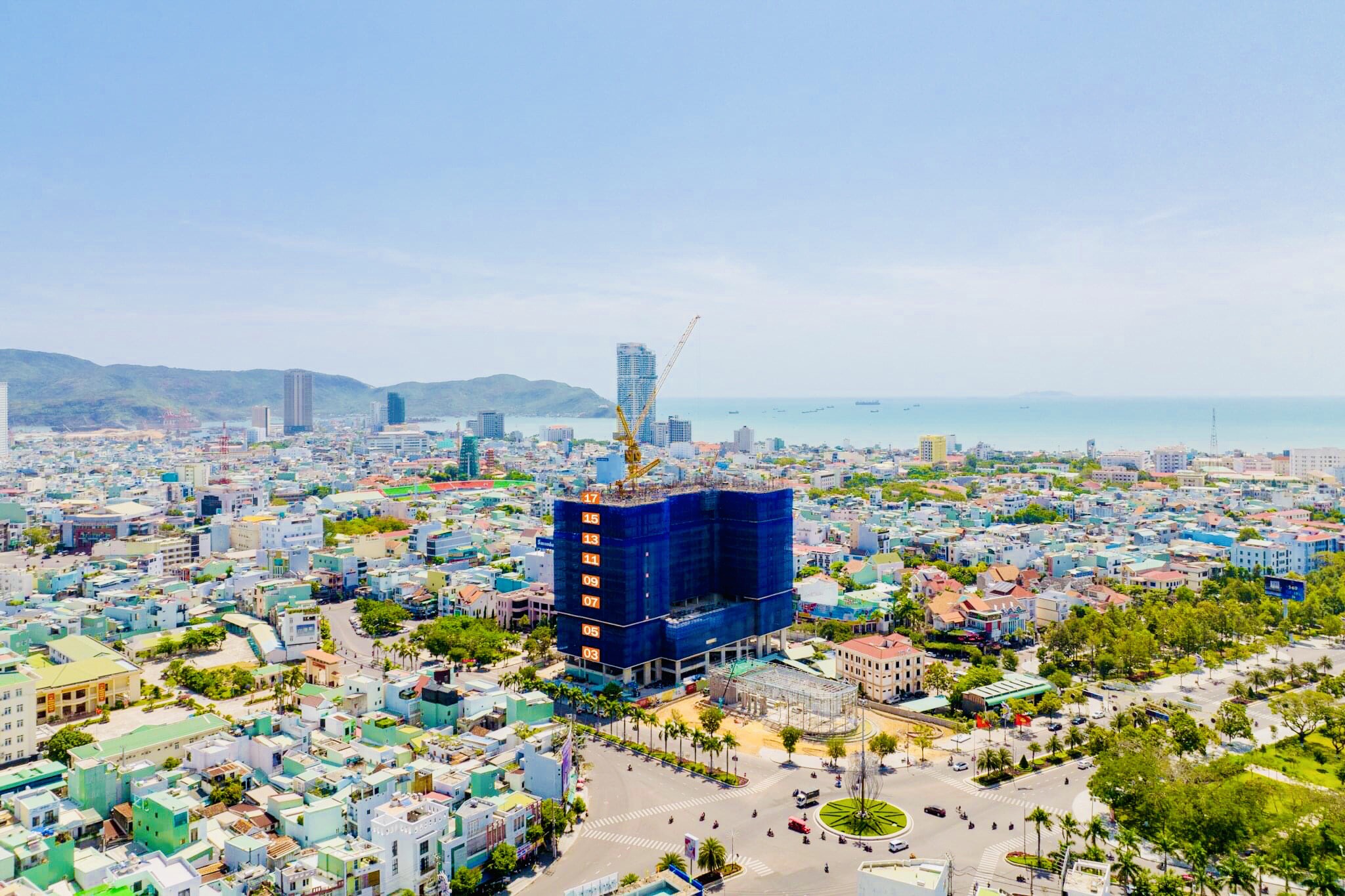 Tiến độ dự án Grand Center Quy Nhơn địa chỉ 01 Nguyễn Tất Thành, nằm ngay vòng xoay Nguyễn Tất Thành và Nguyễn Thái Học.