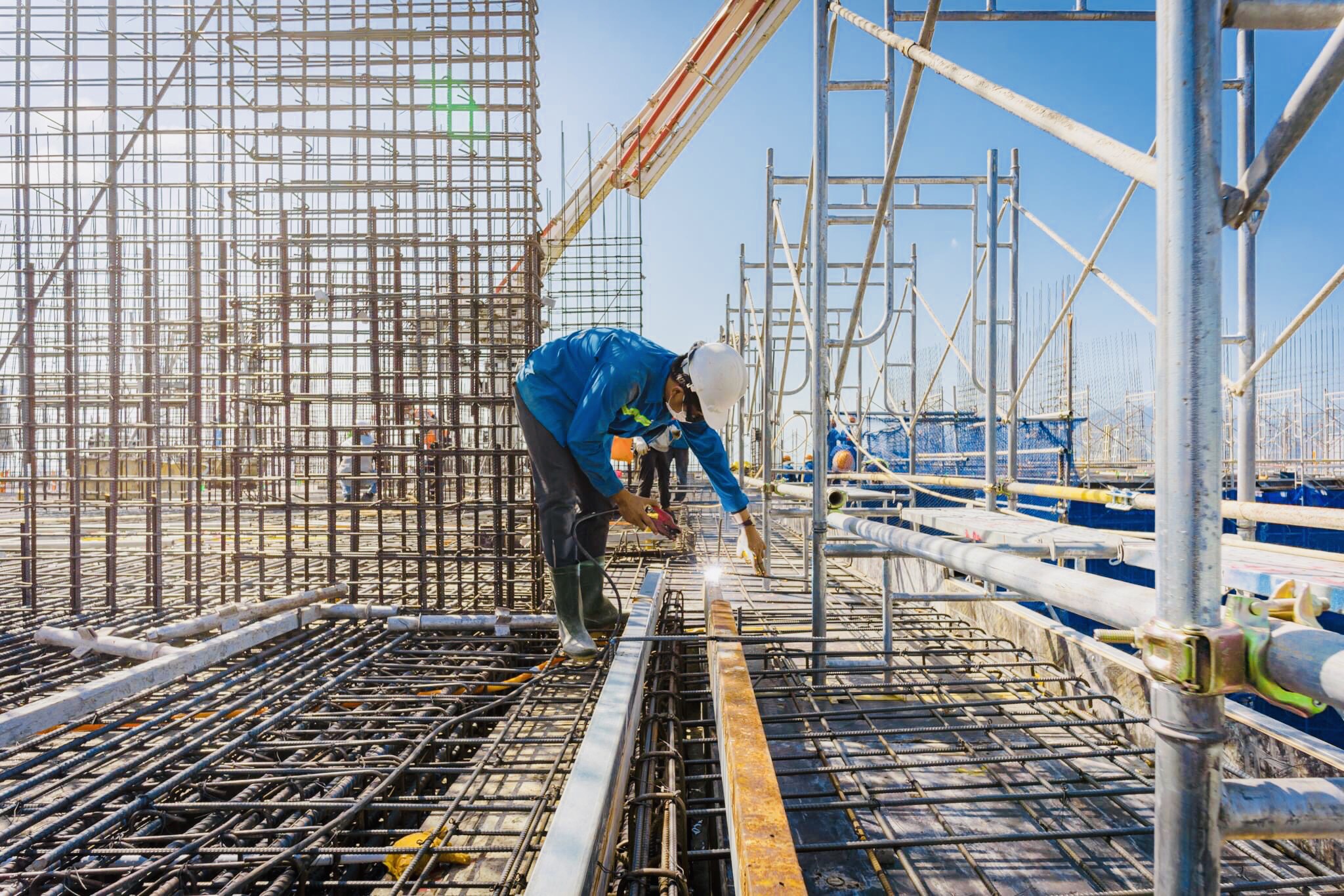 Thợ đang thi công cốt pha dầm, chuẩn bị bơm bê tông.